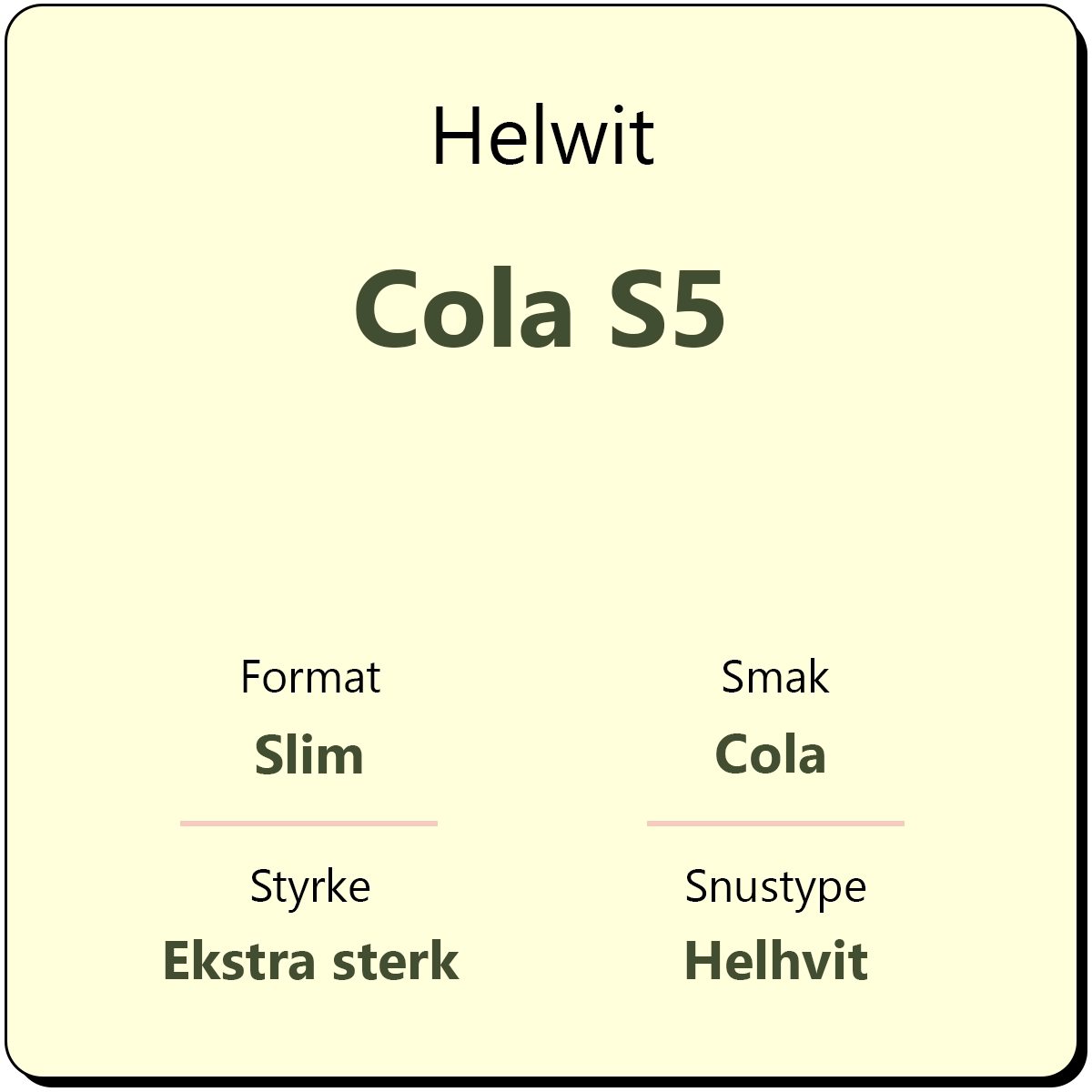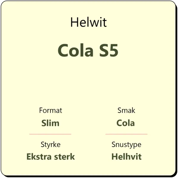 Helwit Cola S5 er en snus med smak av cola i helhvite porsjonsposer, fra den svenske produsenten Yoik AB. Det er en ekstra sterk snus, og den er gitt styrkegrad S5 av produsentene. Hver boks inneholder ca. 30 porsjonsposer.