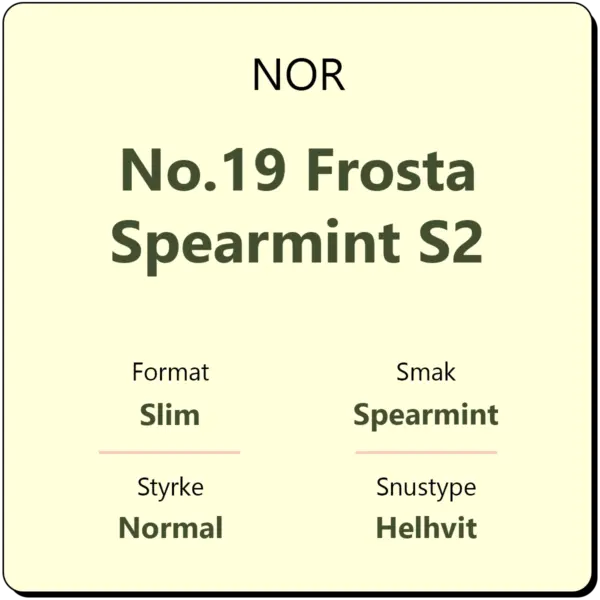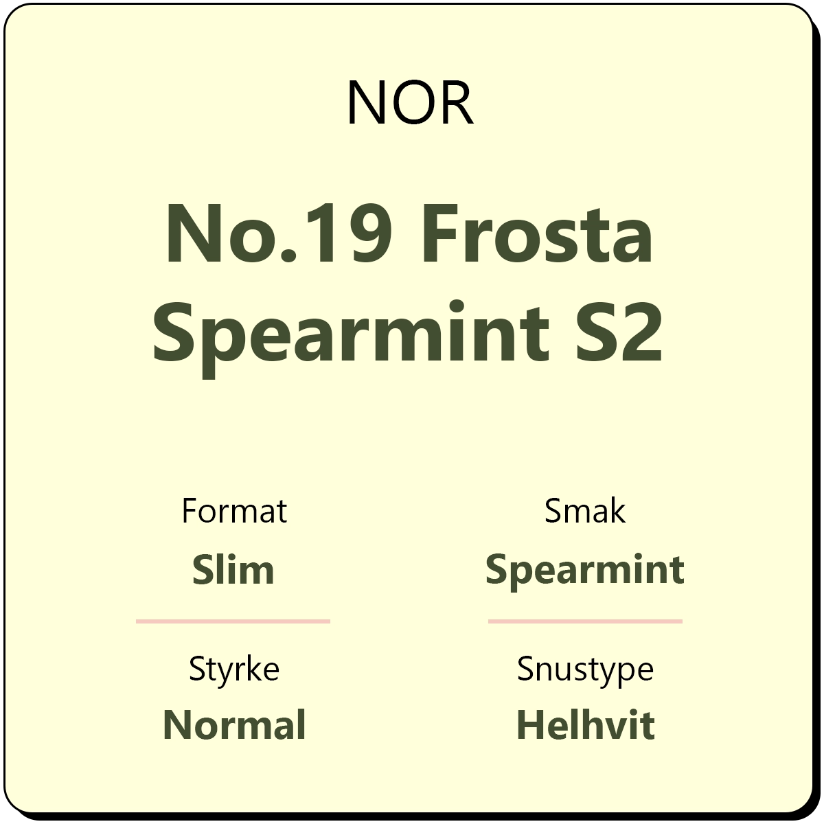 NOR No.19 Frosta Spearmint S2 er en snus med 8 mg/g nikotin, tilsvarende styrkegrad S2. Snusen kommer i helhvite, slim porsjonsposer med smak av spearmint, og produseres av Den Norske Snusfabrikken. Hver boks inneholder ca. 21 porsjonsposer.
